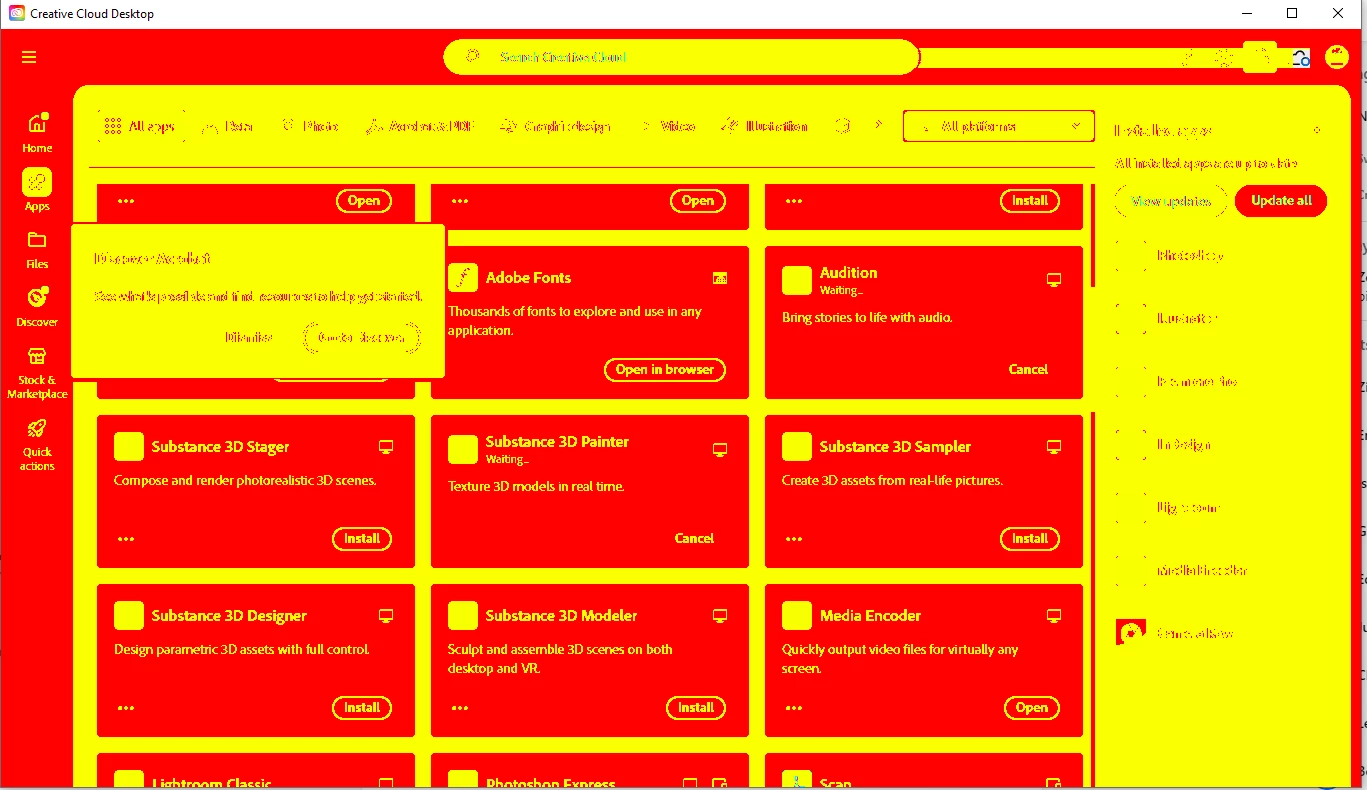 Creative Cloud UI Glitching Red and yellow