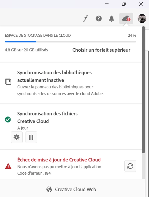 cela fait des mois que j'ai cette erreur 184...