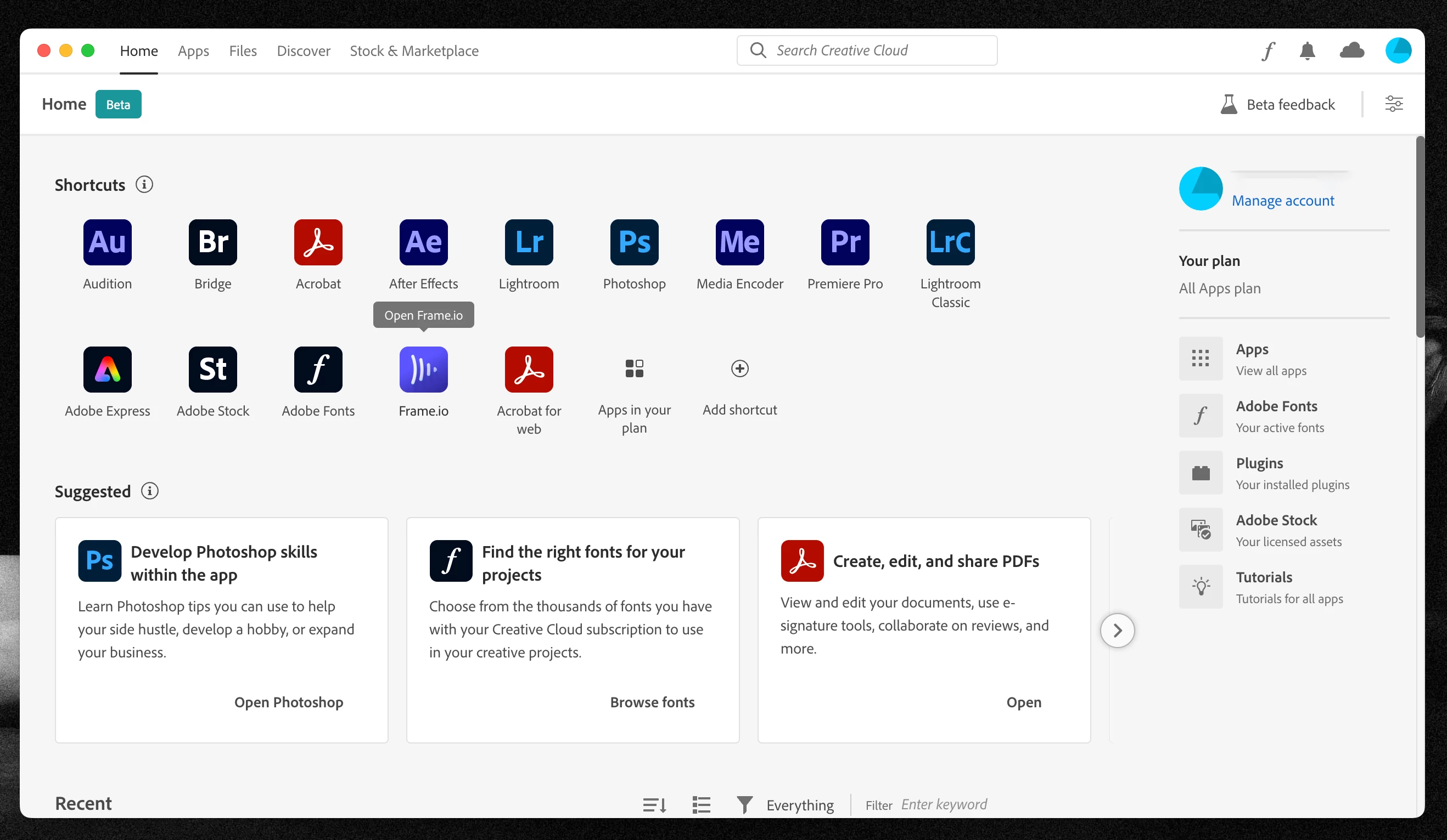 Hey Adobe, I don't want to be part of your stupid beta test of the most useless home page ever.