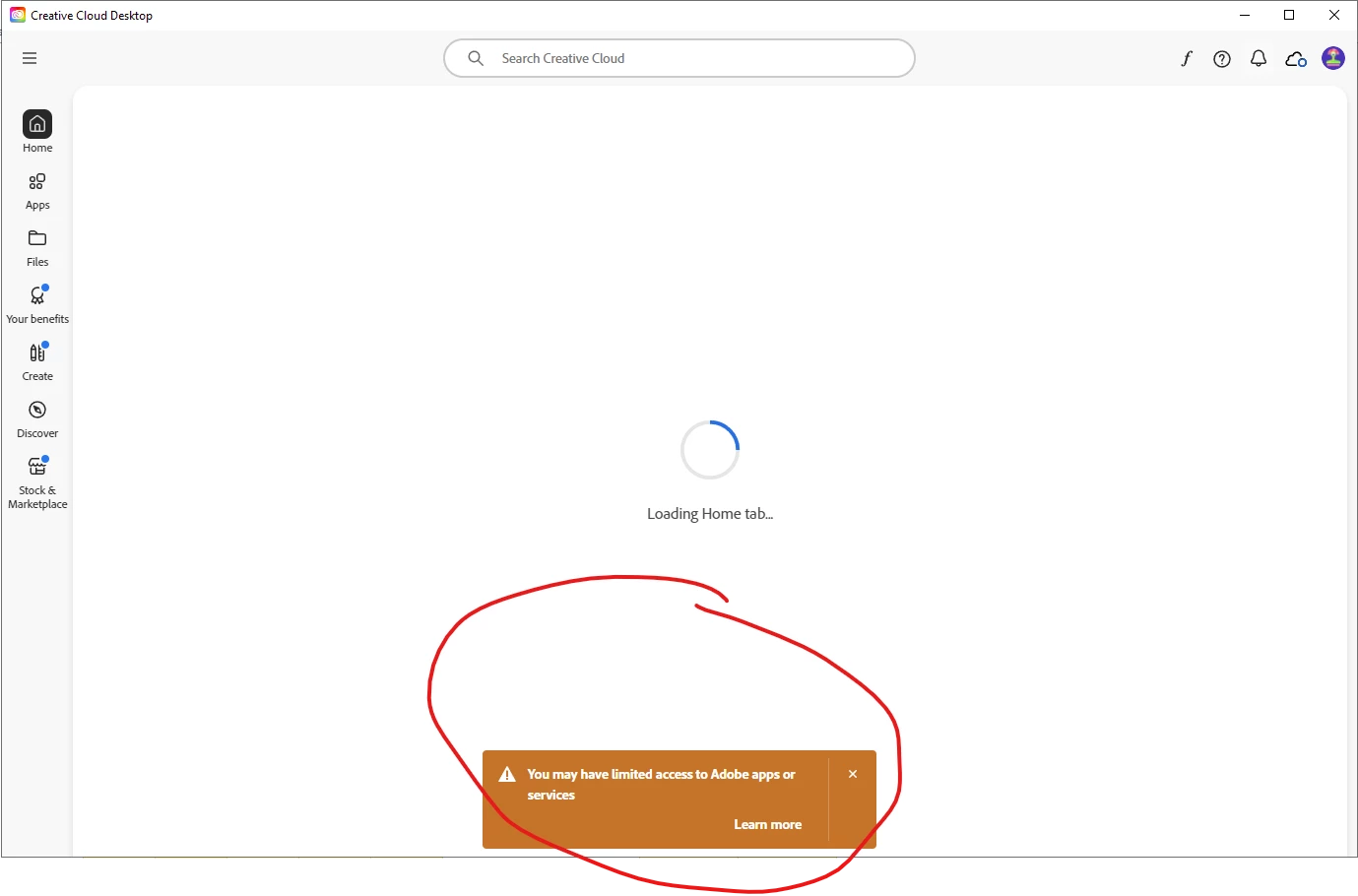 With this problem, I can't install any application, even though I subscribed to the photography plan for 1 year. This is certainly a loss for me!