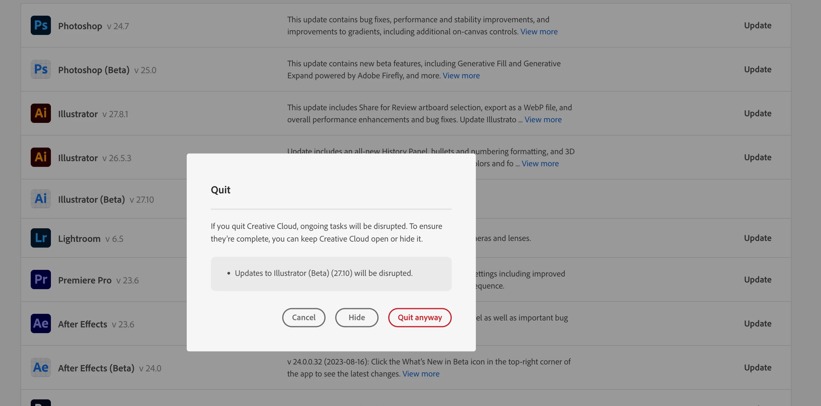 Hi, I canceled while updating Ilustrator beta version, after that it froze as still canceling, I can neither uninstall nor anything else. it doesn't give any error code. moreover this freeze also blocked other updates. What can I do?