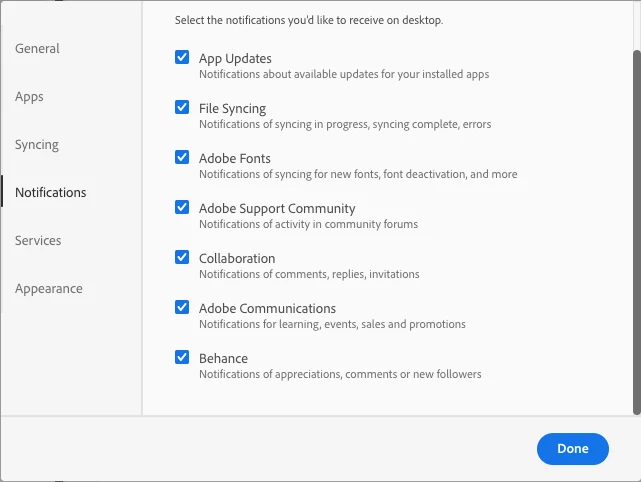 I think it is important to have notifications turned on for Adobe Creative Cloud. I want to know when an app has an update, or someone has made a comment on Behance.