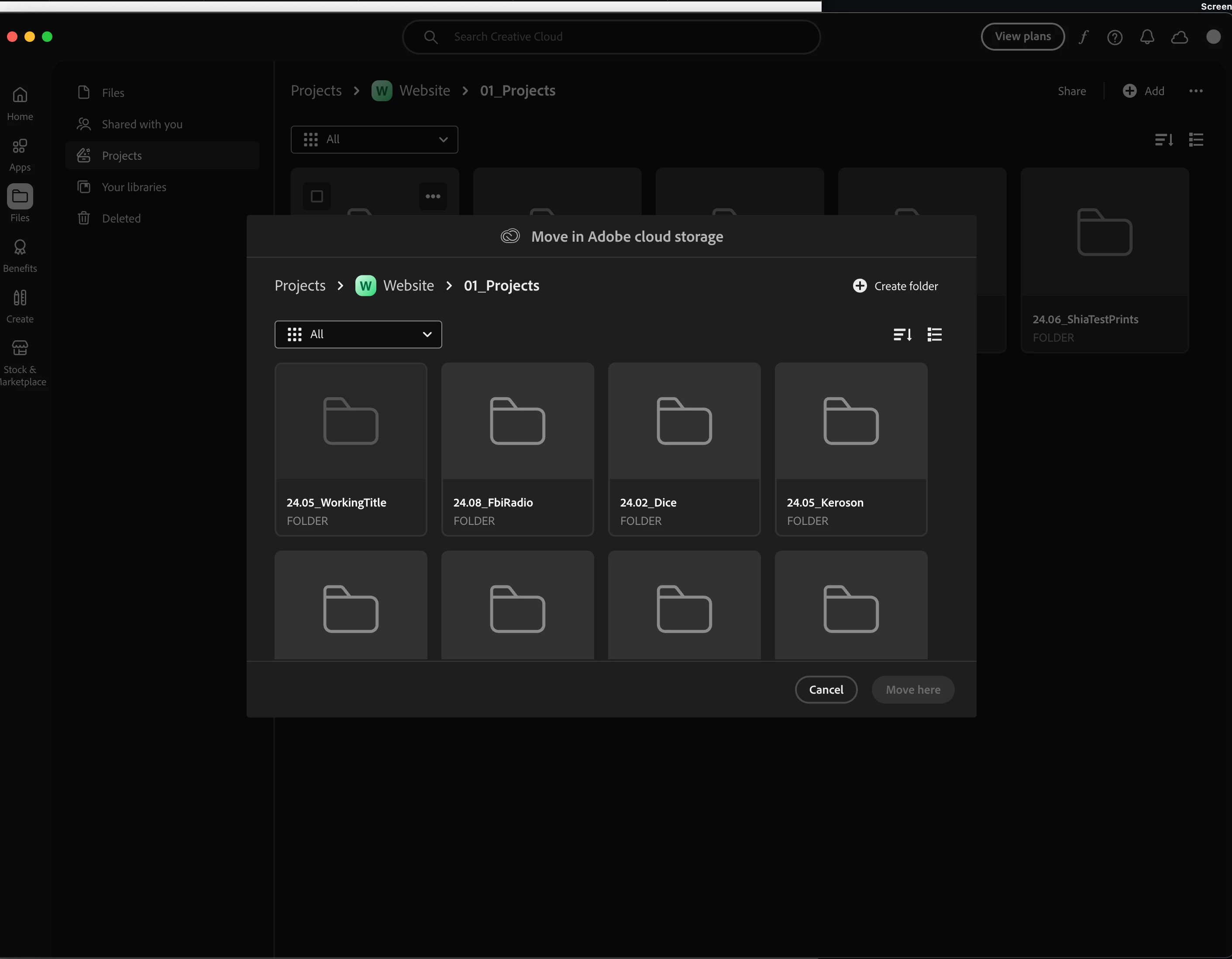 Been playing with the 'Projects' feature in Creative Cloud. During the migration of some work over to explore its use case I have also managed to move over some project folders unwantedly. I now want to move these folders back to my 'Files' and there looks to be no current way to do this? I've noted I can move individual files, just not folders. Can you confirm that this utility is not currently available — and if not possible please consider adding this feature.