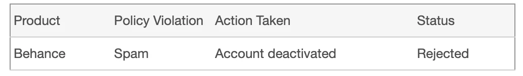My account have been suspended supposely for ''SPAM''. And To me it's false and unjustified . I just want to publish my creation here, to use it as a portfolio. My account as been suspended, I reveived an email from adobe and says ''Policy violation : SPAM'' with out explaining anyting. There's no way to contact any help center... so I'm stuck in a dead end. Is there any way to contact Adobe to have an explination...