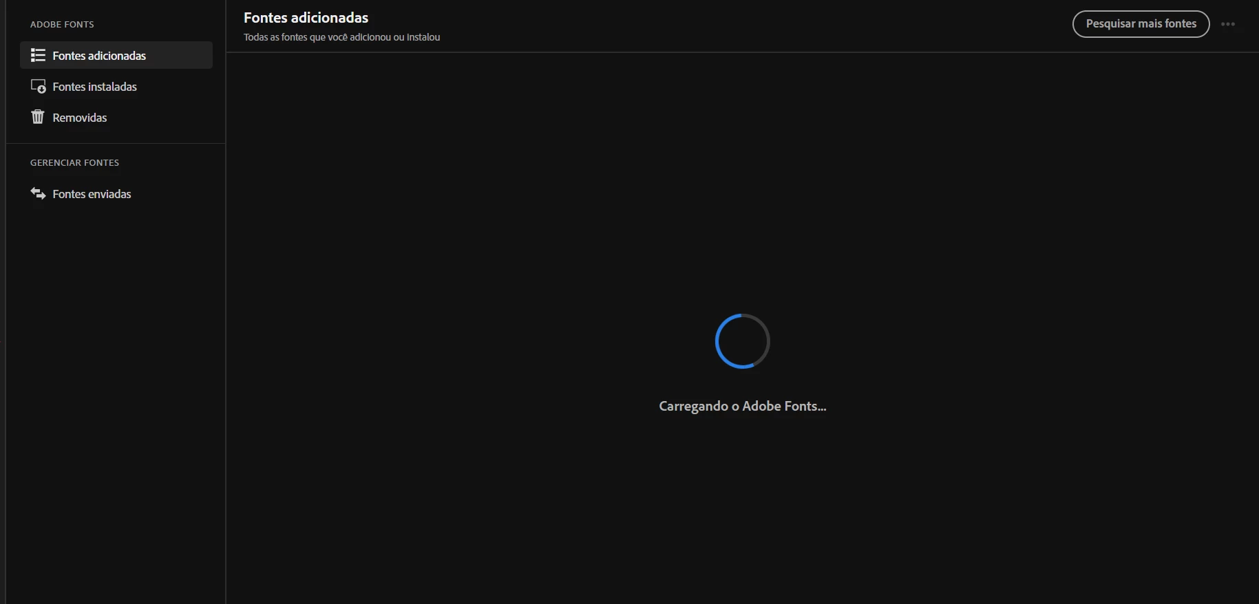 Guys, my adobe fonts got out of sync, since yesterday it just shows a loading circle when I go to my fonts page added to creative cloud, I've already tried disabling it in the services tab, disabling the firewall, logging out of creative cloud, freeing up storage, pausing the sync, but nothing happens, I lost all my added fonts and I can't check my fonts panel because it's on an eternal loading screen. ;(