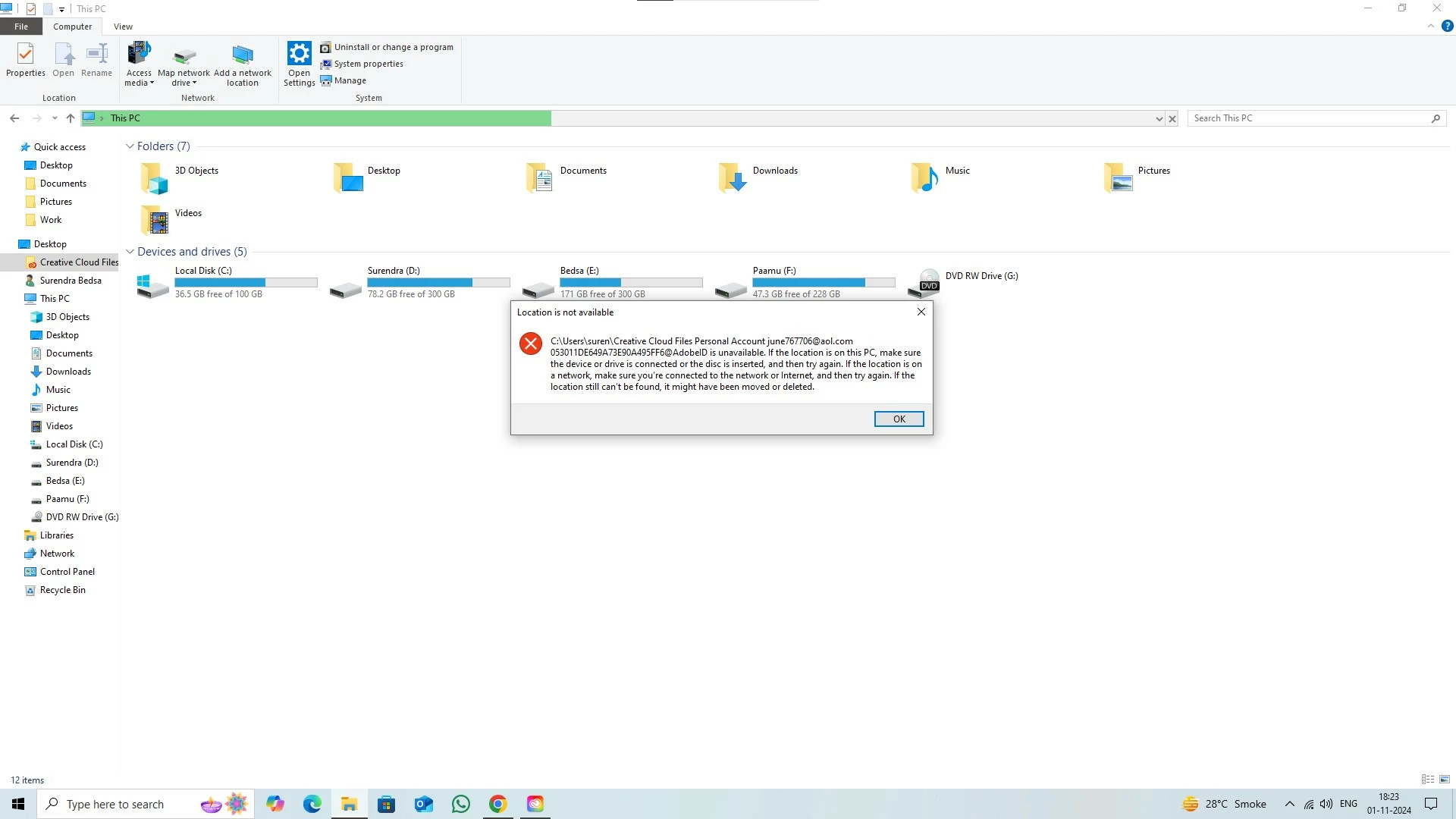 if that fails, Open the registry editor (regedit.exe) & naviagate to: HKEY_CURRENT_USER\Software\Microsoft\Windows\CurrentVersion\Explorer\Desktop\NameSpace You'll probably have two sub-keys. OneDrive's sub-key will be nameed '{018D5C66-4533-4307-9B53-224DE2ED1FE6}' Delete the other one, that will be Creative Cloud.