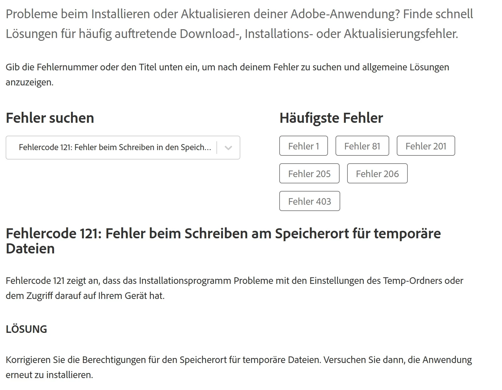 Fehler #121 soll auf ein Zugriffsproblem auf den Temp-Ordner hindeuten. Ich wüsste nicht, wieso. Ich habe den Zugriff (für den Ordner und alle Unterordner sowie Dateien) für jeden freigegeben.