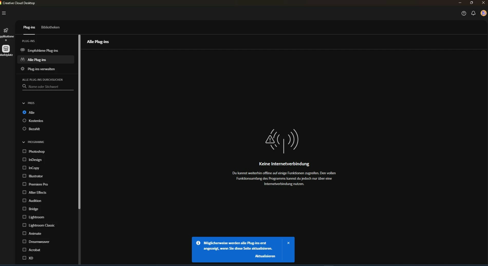 Problem with Plugins Tab in Adobe Creative Cloud Desktop App