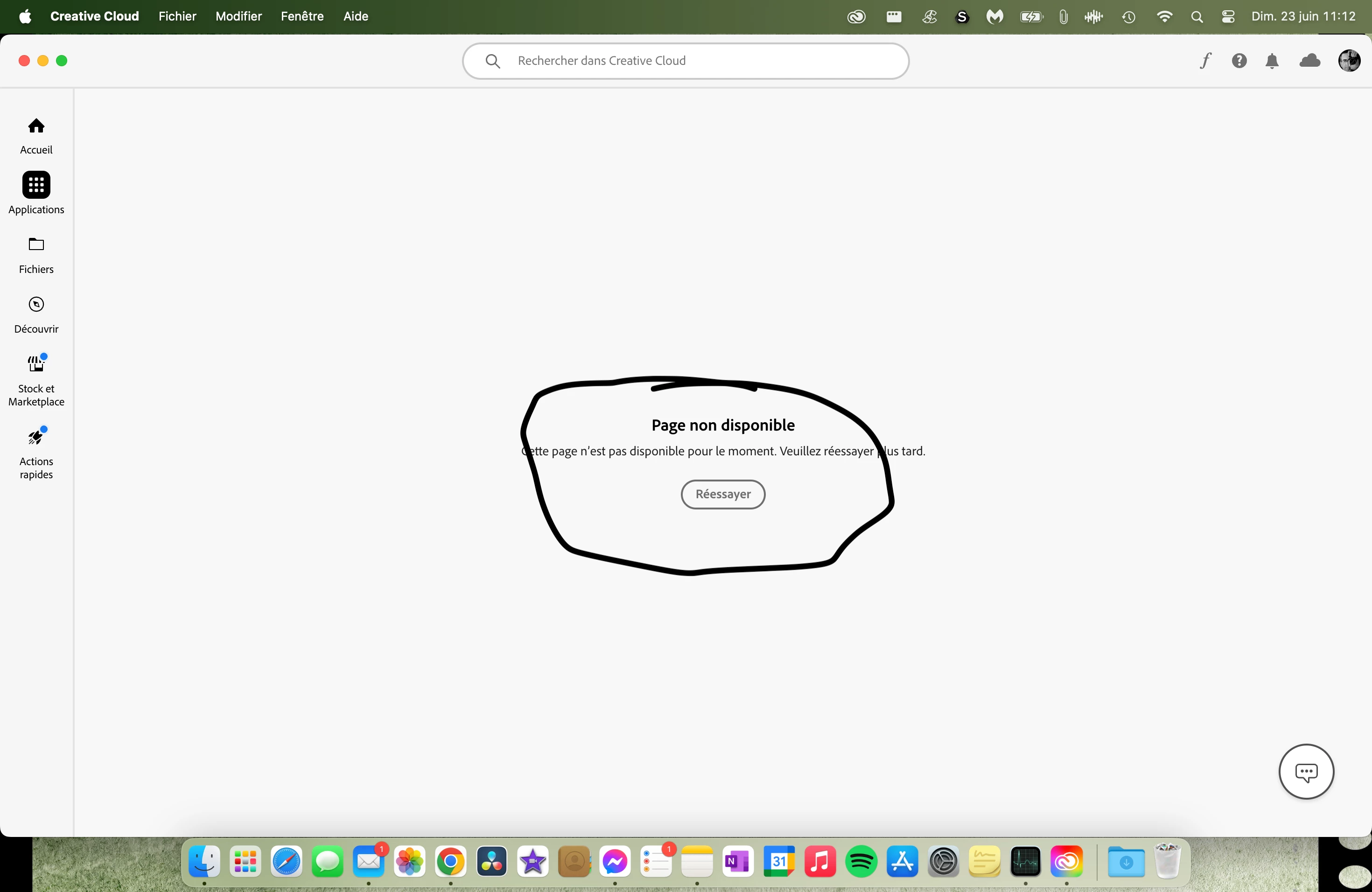 Problem with the "Application" section of Creative Cloud
