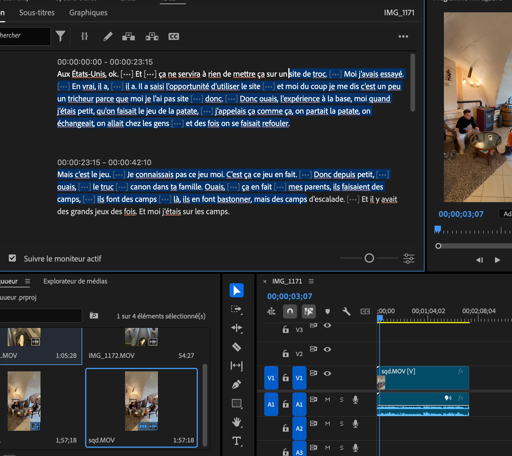 Bonjour. Je n'arrive plus à extraire des textes ou extraire des parties de vidéos à partir de la transcription. Quand je sélectionne le texte dans la transcription, il ne veut plus s'extraire comme avant. Est-ce que quelqu'un a une solution ?
