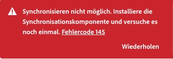 "Synchronisieren nicht möglich. Installiere die Synchronisationskomponente und versuche es nocheinmal. Fehlercode 145"