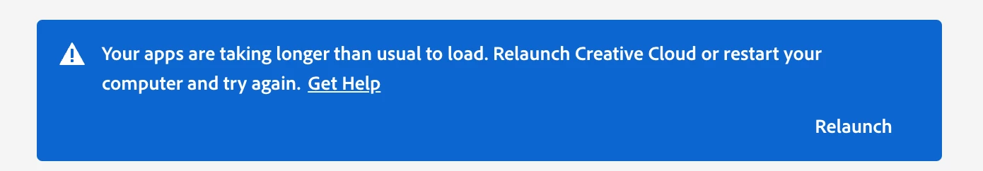 CC keeps showing a spinning wheel 'Loading apps' and then a blue rectangle that 'Apps are taking longer than usual to load'. In my case, the apps usually do not load at all.
