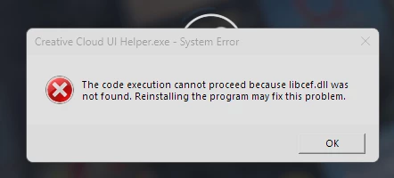 the code execution cannot proceed because libcef.dll was not found