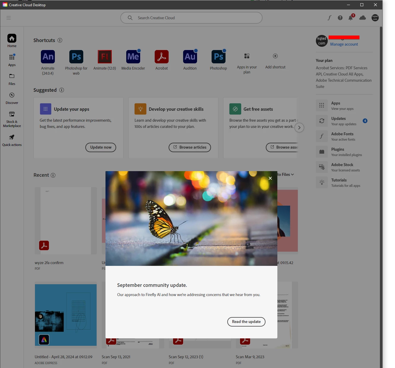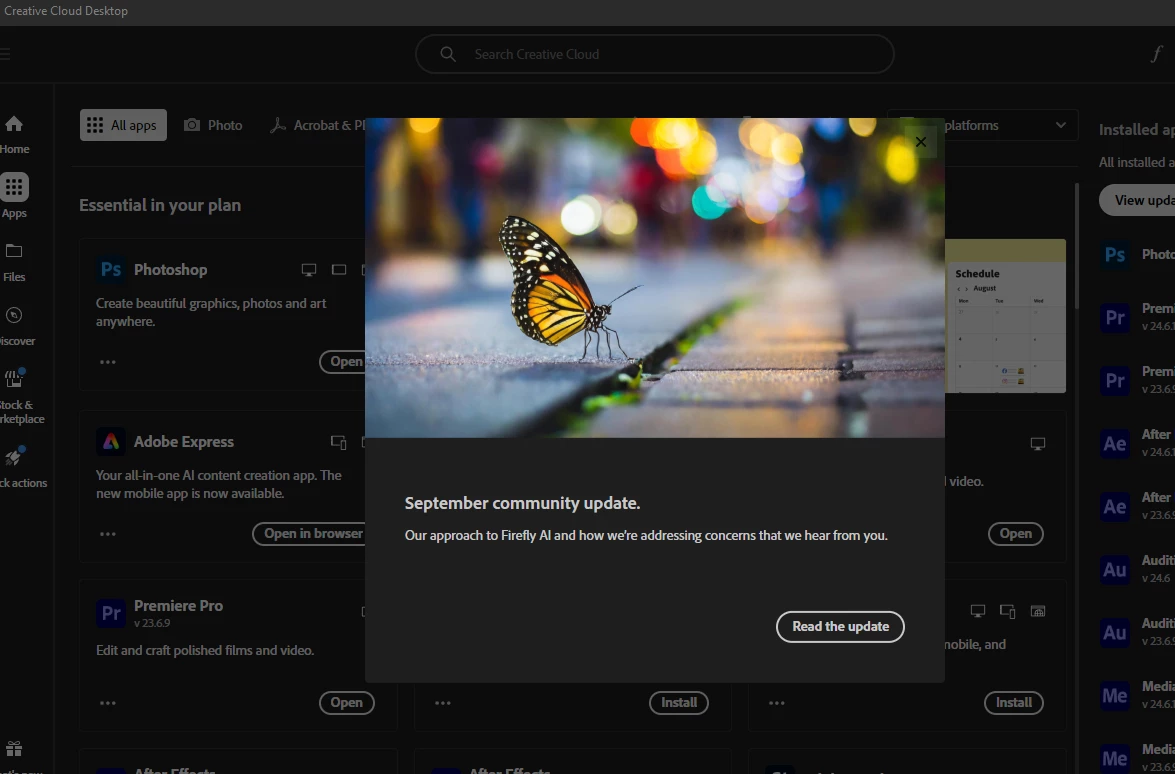 Clicking [Read the update] on what's new