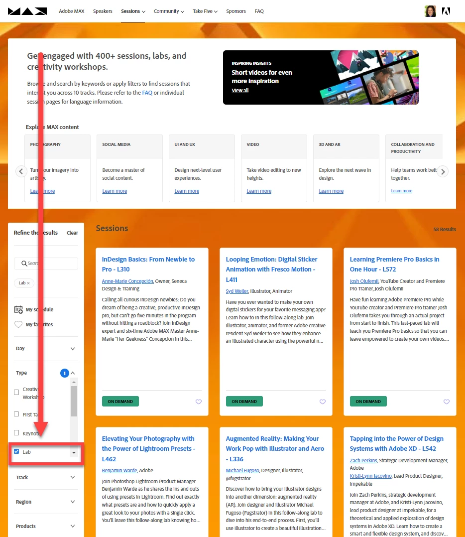 It appears that the Adobe MAX 2021 labs are online (usually only the sessions, keynotes, and sneaks are). When you select a lab (https://www.adobe.com/max/2021/sessions.html?Type=Lab),