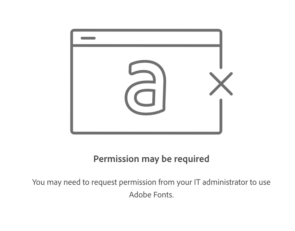You may need to request permission from your IT administrator to use Adobe Fonts Error