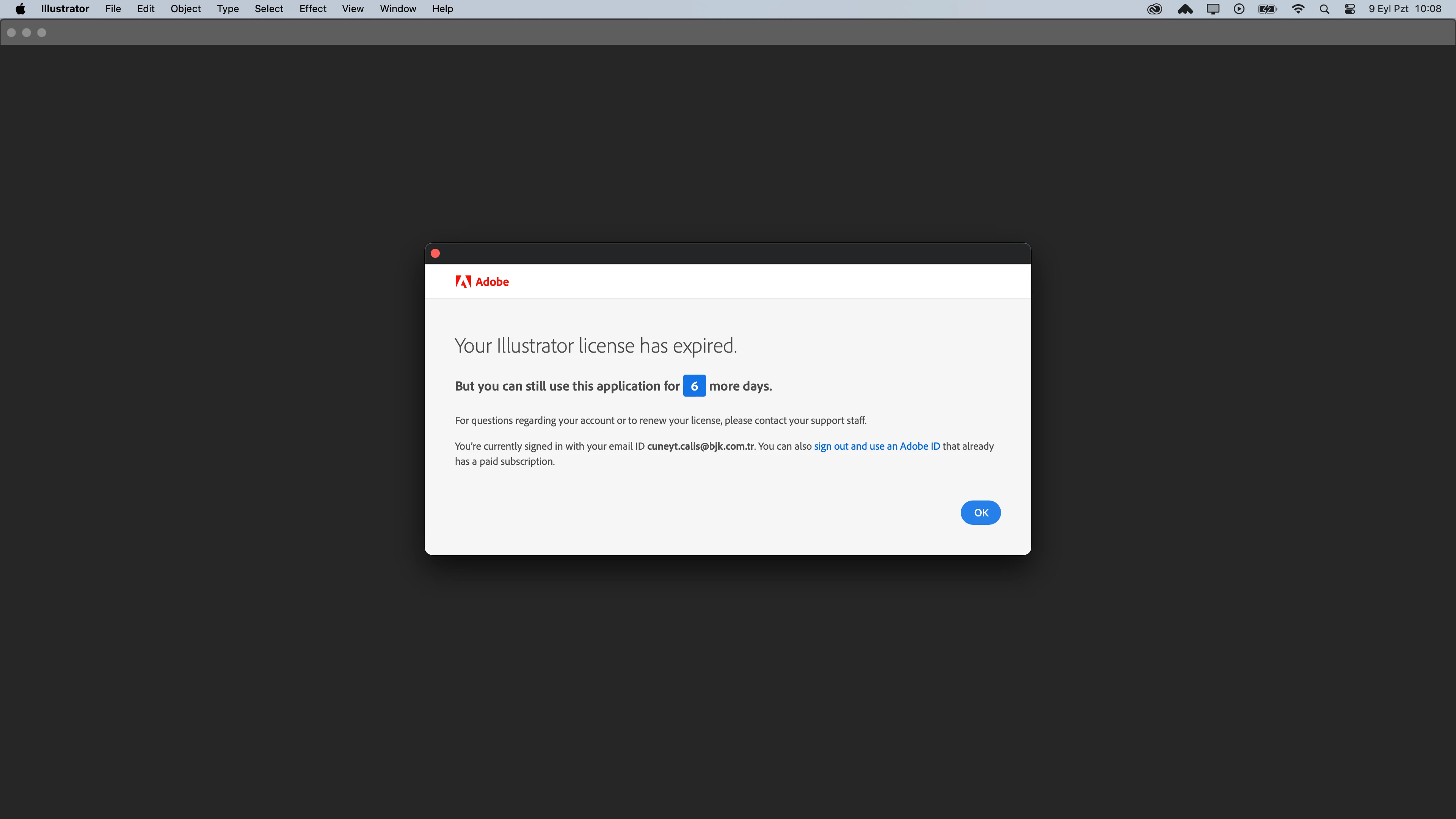 Your Adobe license has expired warning