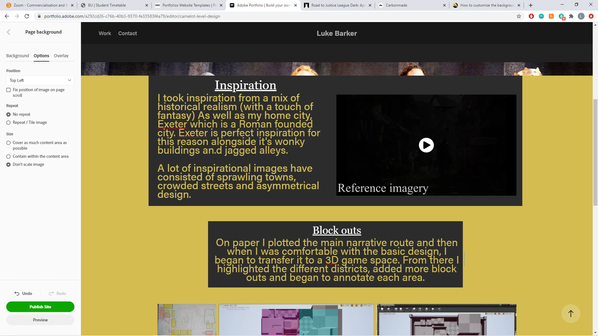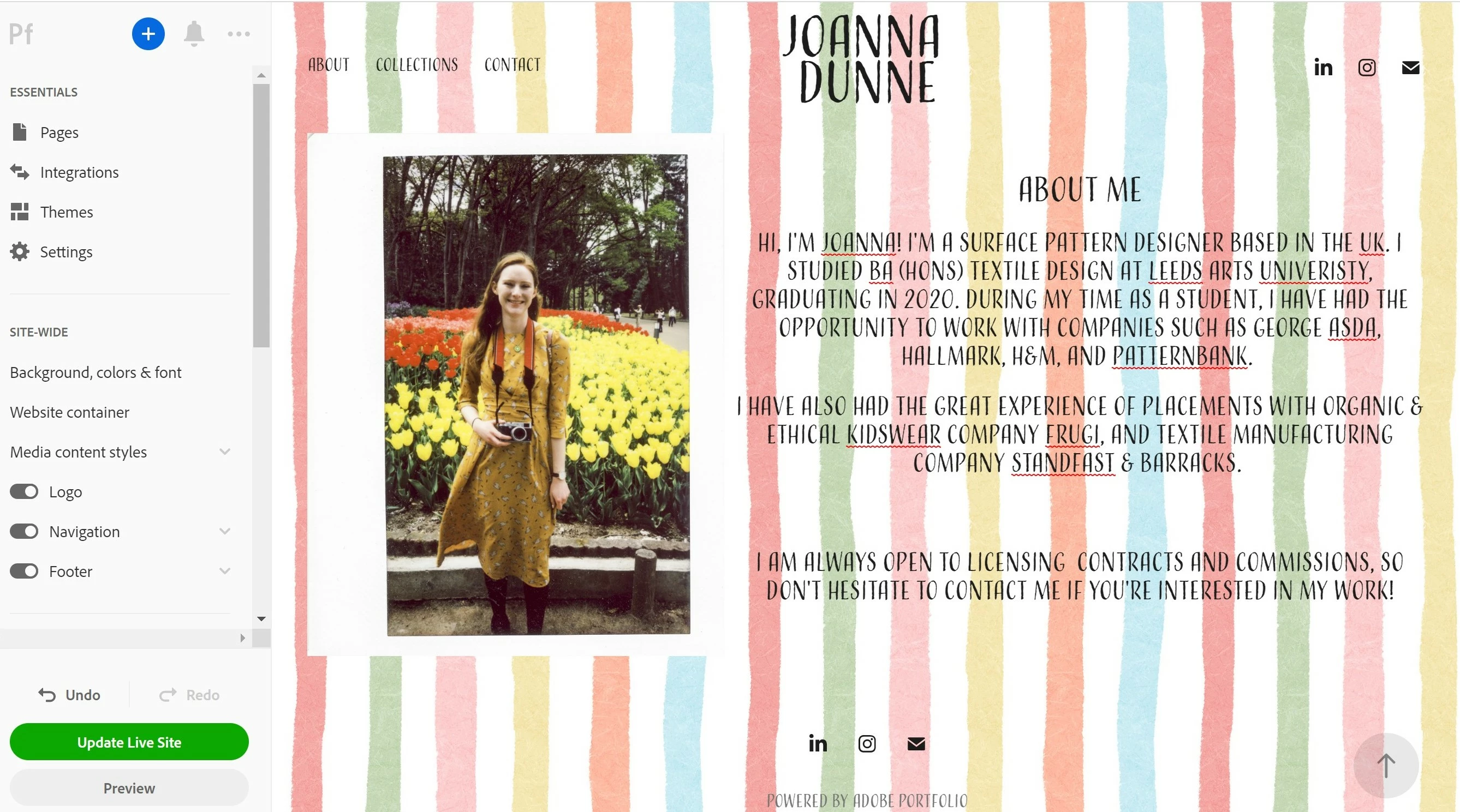 I'm creating a website on Adobe Portfolio, and I'm just onto creating the About Me page.