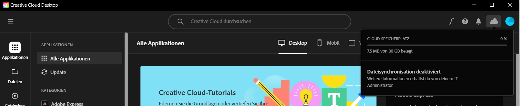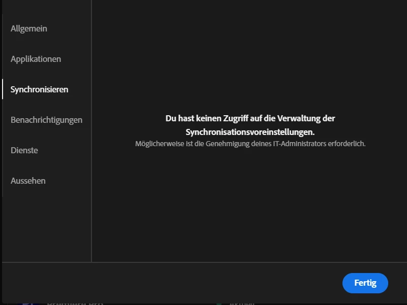 Adobe Bibliothek nicht verwendbar, kein Sync vorhanden, alle Benutzer