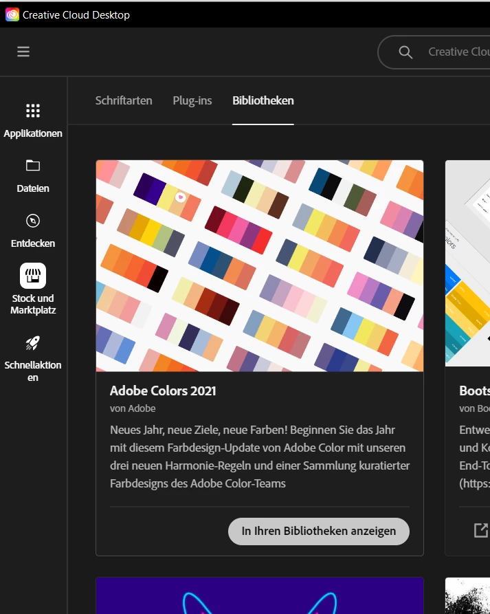 Wenn ich unter "Stock und Marktplatz" im Register "Bibliotheken" bei einem Objekt auf "In Ihren Bibliotheken anzeigen" klicke, erscheint ebenfalls eine Fehlermeldung (siehe Printscreens).