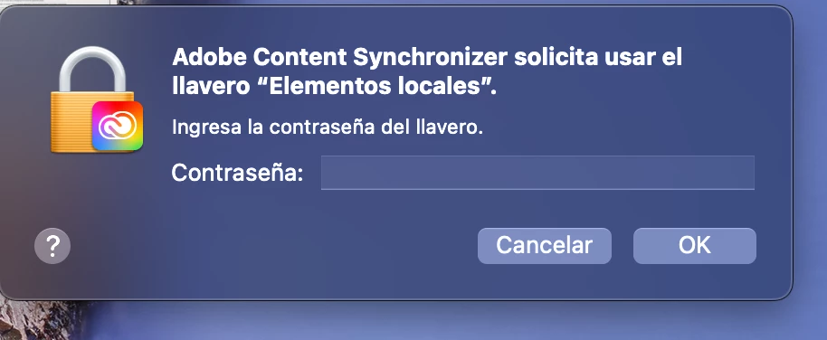Adobe Content syncronizer solicita siempre acceso a llaveros