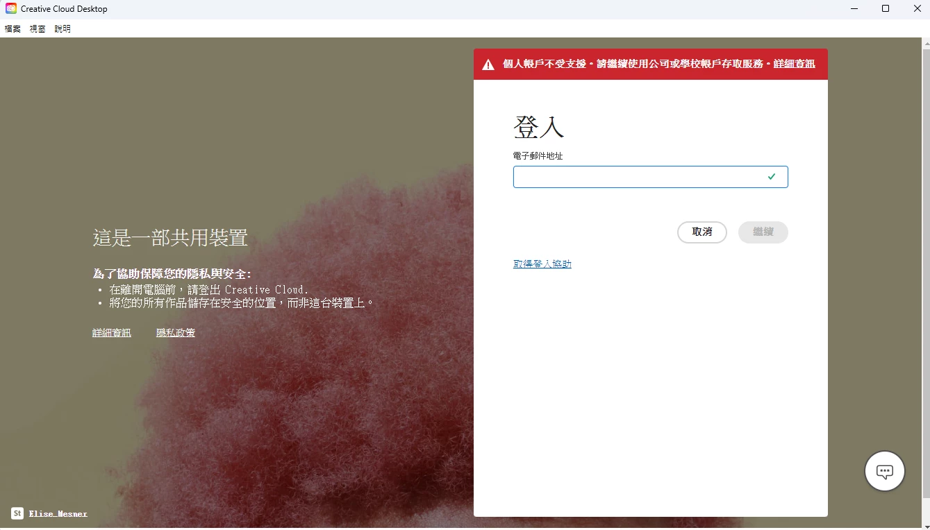 Adobe Creative Cloud 不支援個人帳戶? 下載後閃退