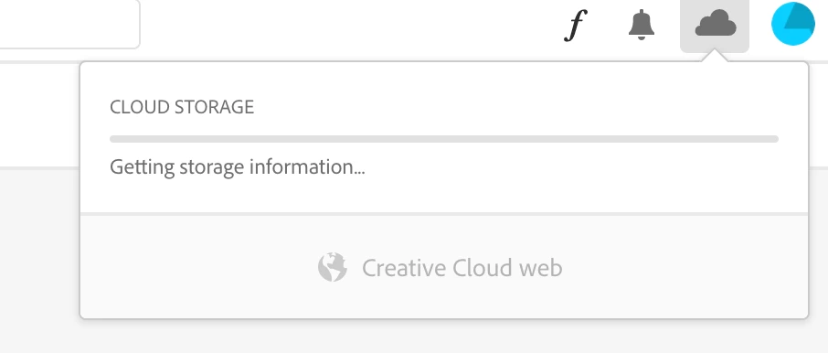 But the problem is, when I click the cloud acitivty icon to in the Creative Cloud desktop app I'm unable to see cloud storage and sync status beacuse it keeps on loading.