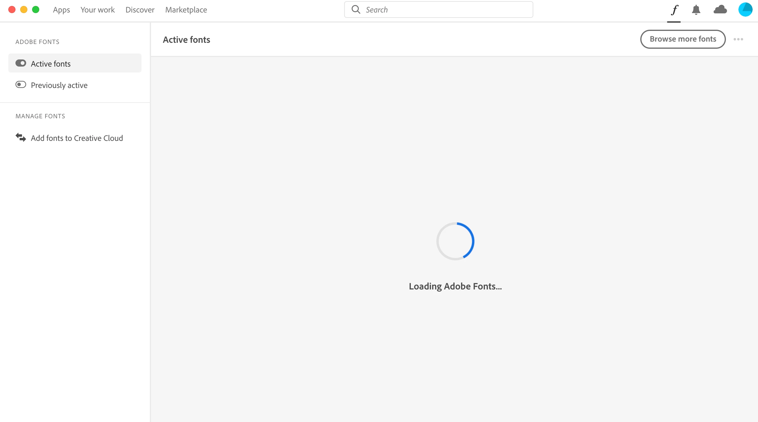 Adobe font page + Cloud activity page stuck on loading