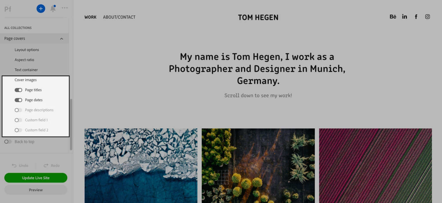 In the tab to edit page info, for any given page, there is an option to put in the page date. It then also displays this date when you hover over said page cover.