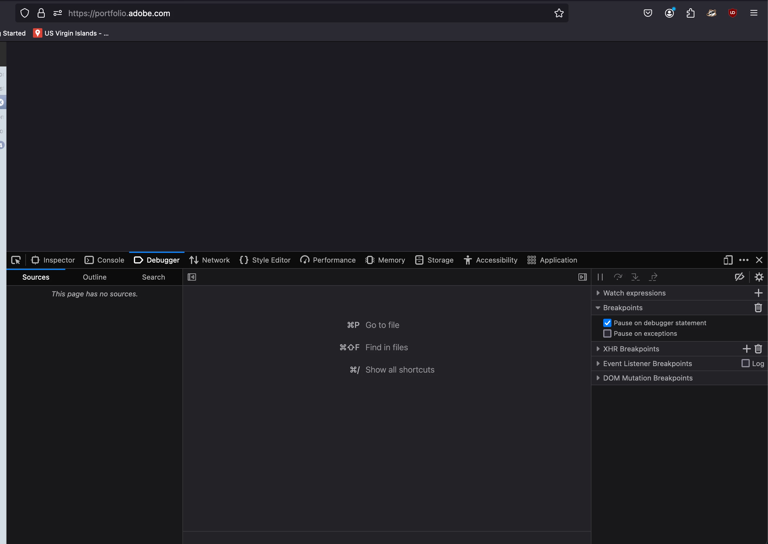 I can't seem to access Adobe Portfolio. I was able to last weekend, but now it gives me a blank screen, no error visible either. I am using firefox. I tried clearing my cache and history, but it still doesn't work. I also attempted to access it from Safari, but that's down too.