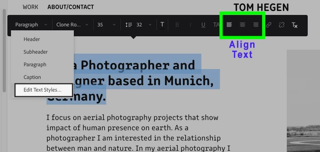 Adobe Portfolio Text Alignment Issue