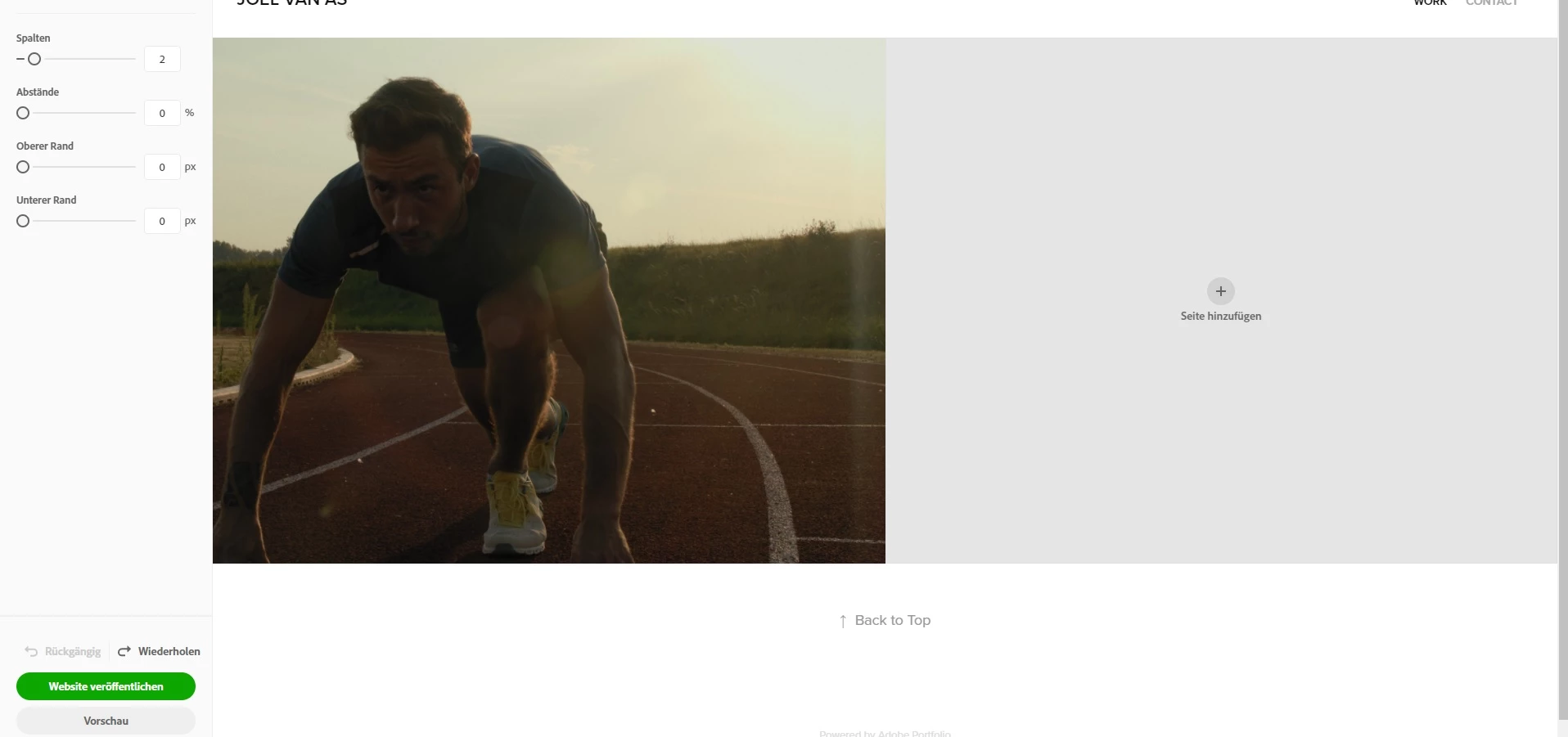 I'm trying to change the layout of my Adobe Portfolio website (Thomas theme) so that two columns appear next to each other. Although that seems to work, I still can't find a way to change the height of these columns. I know that it is possible with this theme, because I've seen it on somebody else’s portfolio. I would like the images to have an aspect ratio of approximately 16:9. See the two images added below to get a better understanding of what I'm trying to do: