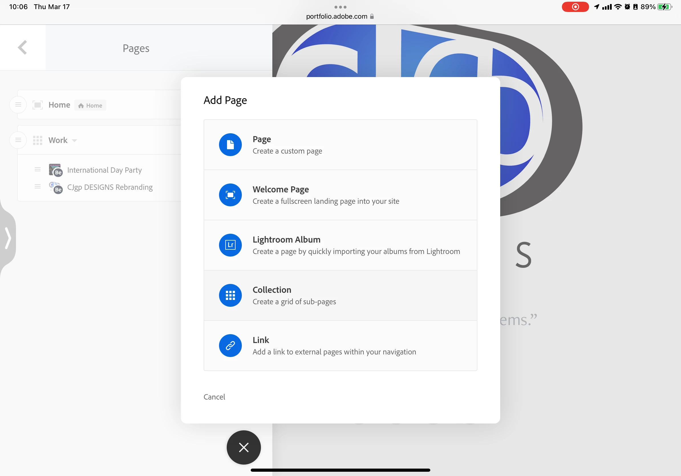 [Adobe Portfolio] Unable to add pages.
