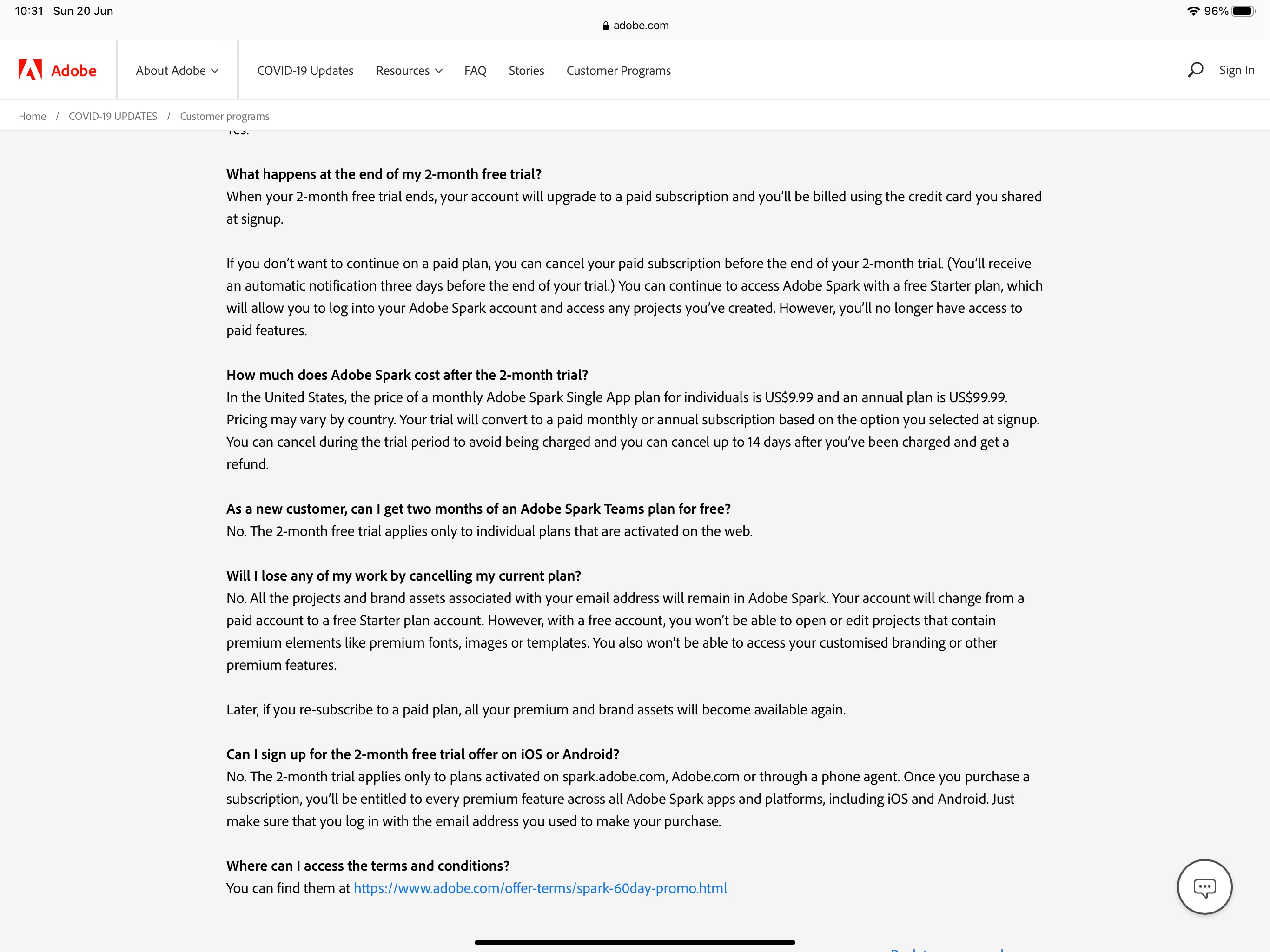 I am not sure if this is the right forum to use as there is not one for Adobe Spark and I am struggling to get in touch with someone from Adobe support directly, but I am hoping that someone will pick this up here.