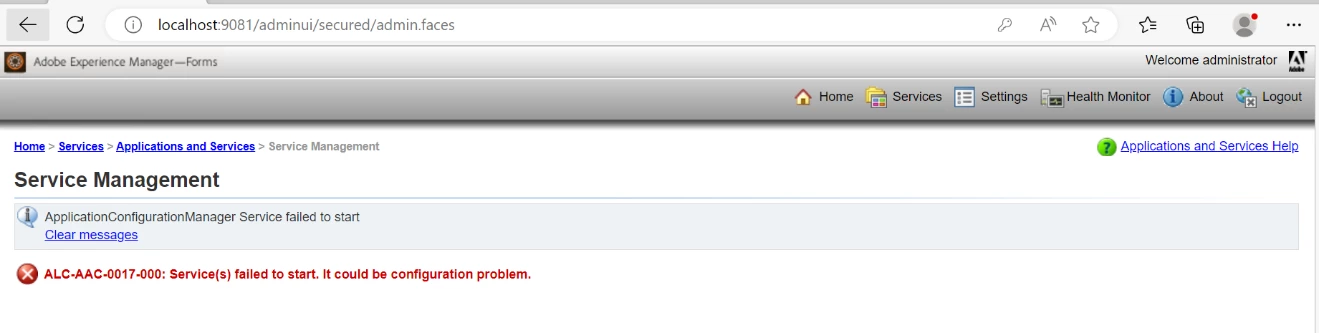 ALC-AAC-0017-000: Service(s) failed to start. It could be configuration problem.