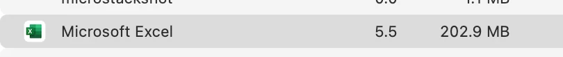 What in gods' name is eating 20% of an i9 processor and 2.5x the memory of EXCEL, a non-native, known-to-be-bloatware app (which, incidentally, has a 49,000-row, 14-column document loaded and is IN THE FOREGROUND), especially when it's not (supposed to be) even RUNNING!?