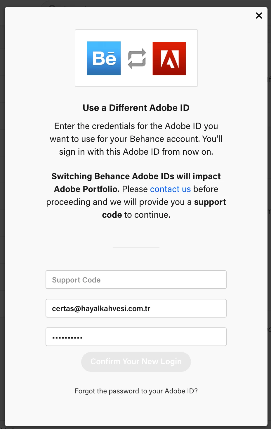 Associating my Behance account to a new Adobe ID