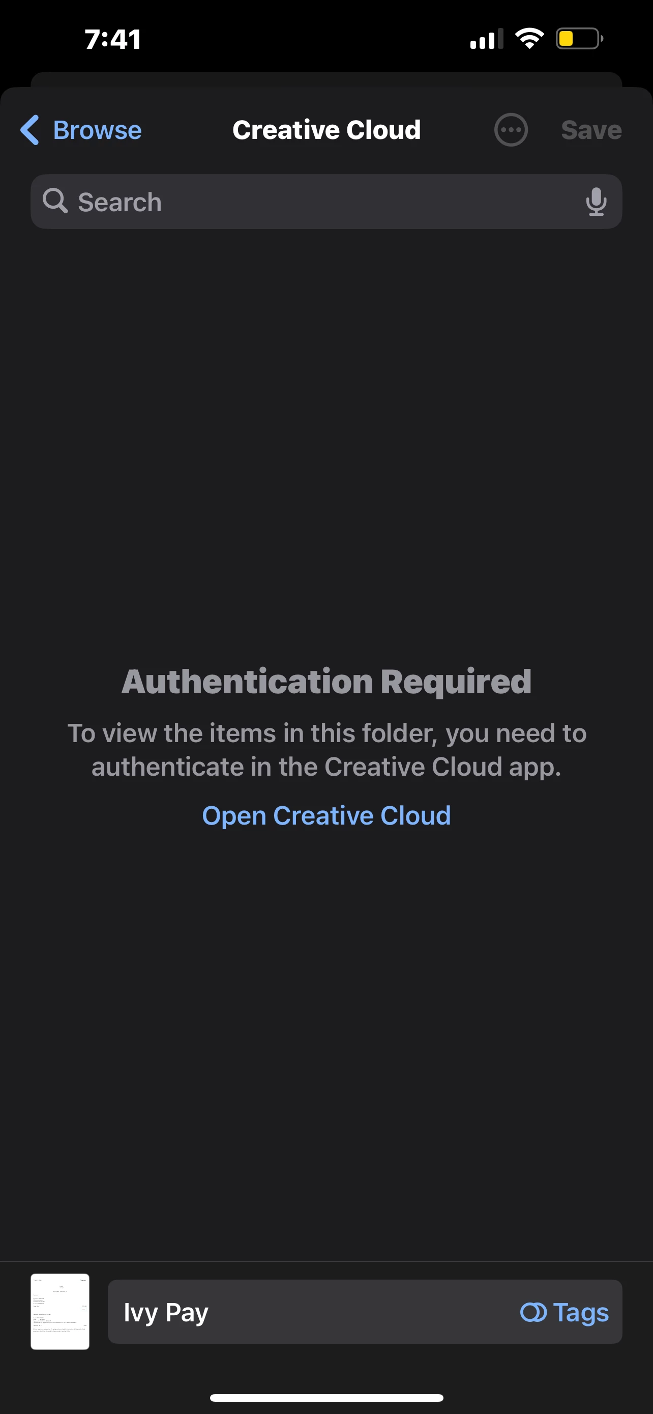 Authentication Required to save a file to Creative Cloud on IOS IPhone Mobile Chrome App