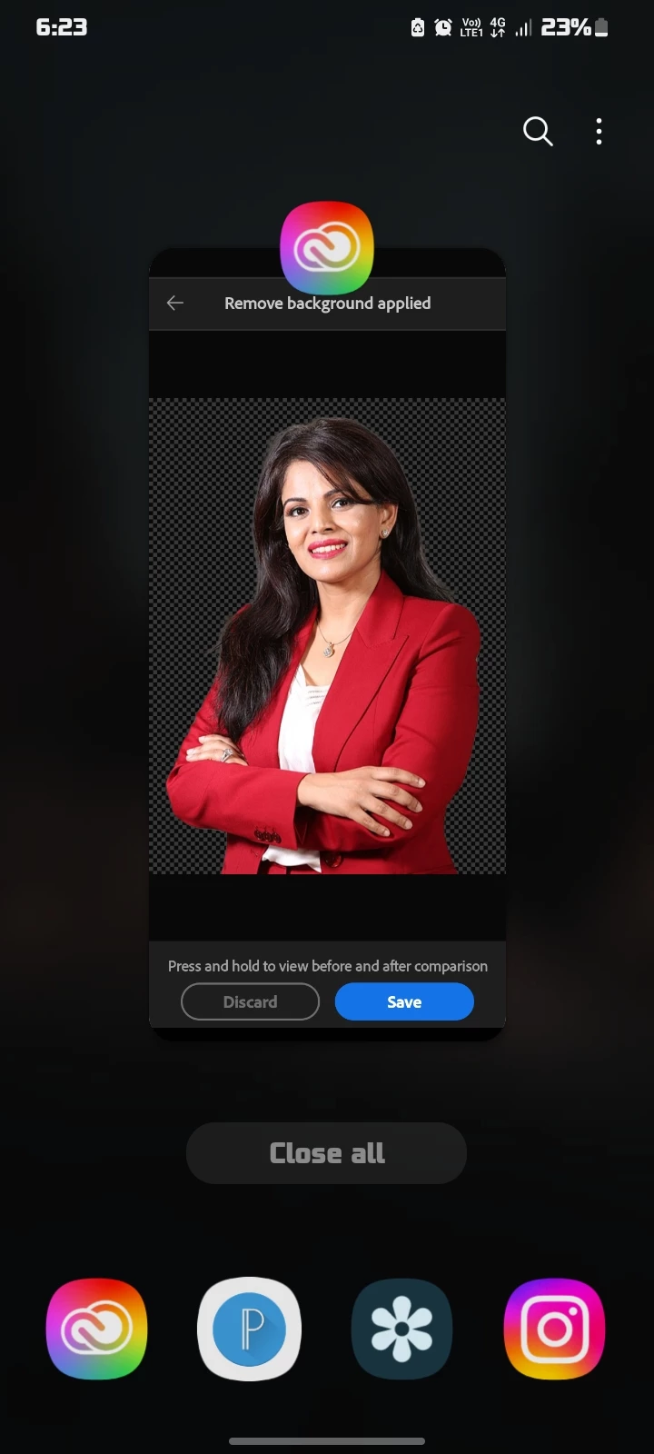 Background of image turns to black after being removed in Adobe creative cloud(android version).