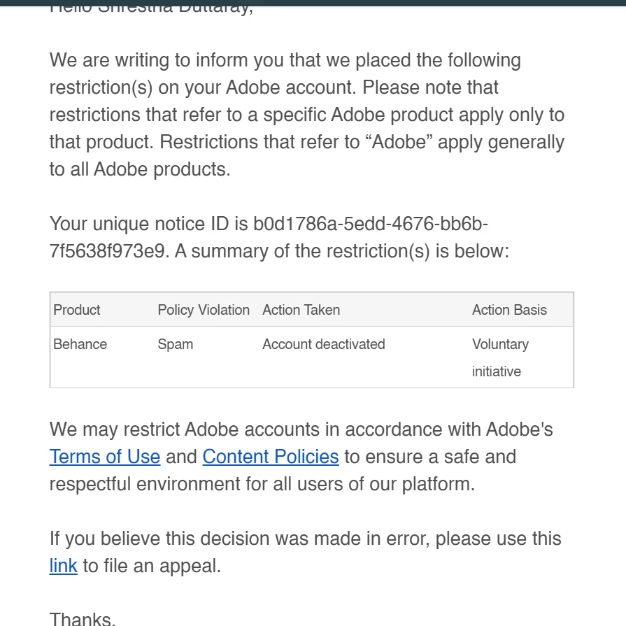 My account was banned on the suspicion of spam. I had just changed my username, and the next minute I know I get an email saying I was banned. I don't understand why and how. Please help me out here. I post all my work here, and use Behance like my portfolio.