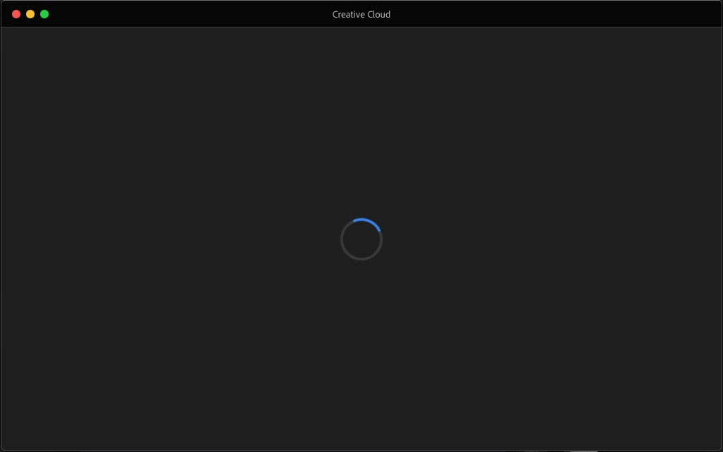 - Adobe CC now hangs showing screen below.