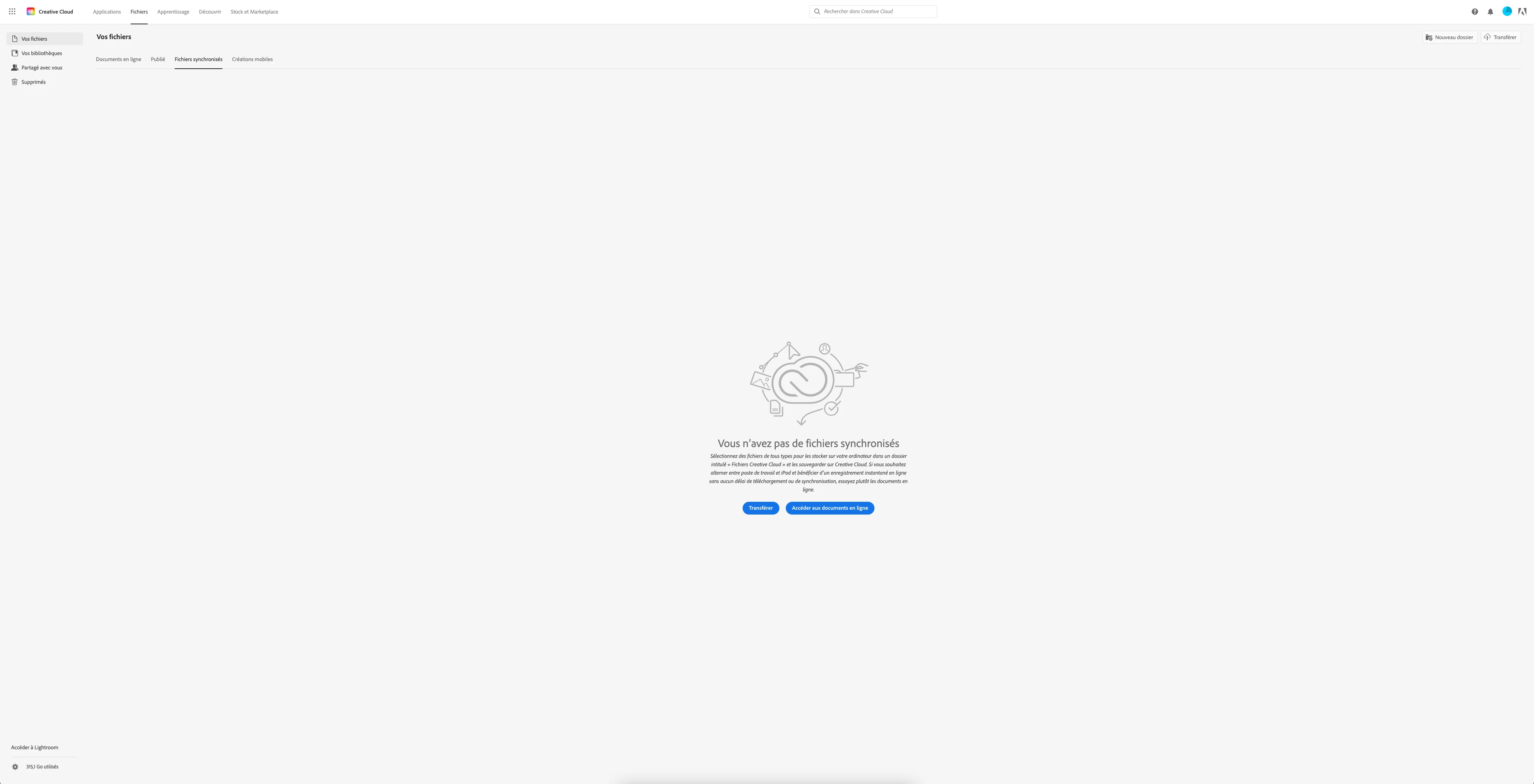 je rencontre un problème de stockage pour lequel je bénéficie de 1 TO. Dans le Creative cloud, il est indiqué que j'utilise 315,1 GO sur 1 TO. Or, je n'ai absolument aucun fichier dans mon dossier synchronisé sur mon macbook, ni même dans mon creative cloud web. J'ai même vérifié la bibliothèque Lightroom, il n'y a rien.