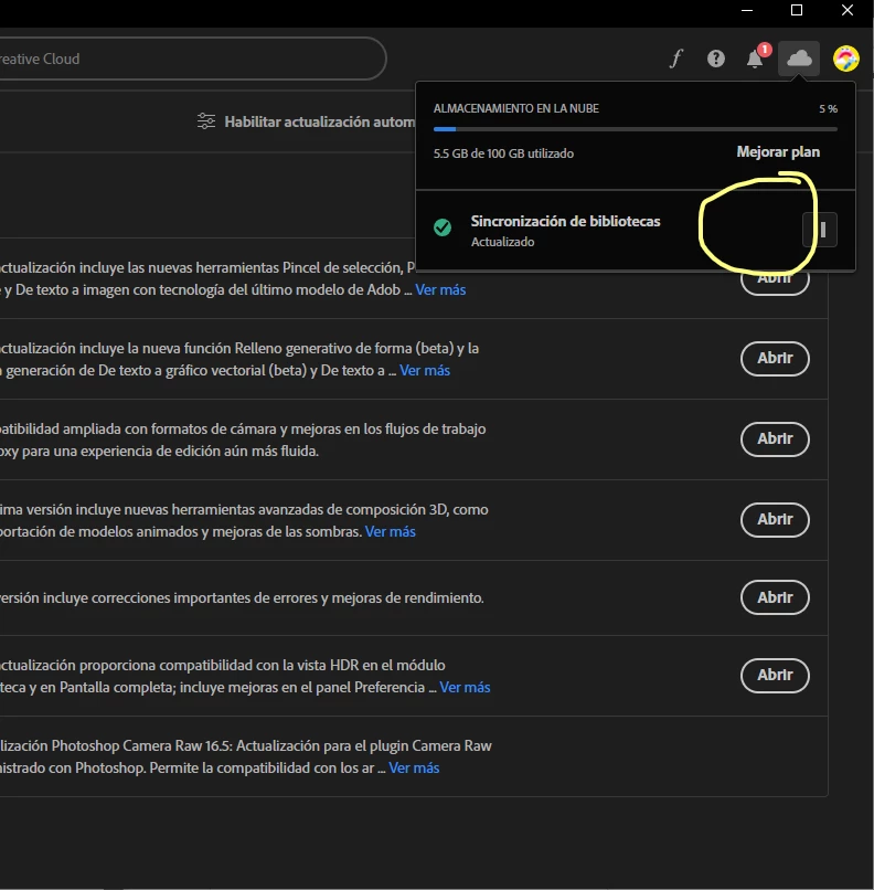 Hola, estoy tratando de cambiar la carpeta para ubicar los archivos que quiero sincronizar con el Adobe Cloud, pero no me aparece la opcion para editar la sincronizacion.
