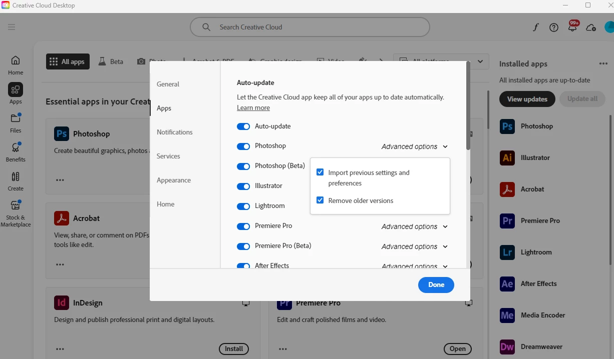 I've gone into my settings and turned on auto-update. I've set both of the check boxes for applications to be checked, but still it doesn't auto-update. Instead, while I use Photoshop Beta, I get messages telling me that there's a newer version I can download when I close the app. I've ended up adding CC to my start up so that, when I boot, I'm at least told what apps need updating and I can bang that out before opening them. But I just want things to autoupdate when I'm not using them. What could I be missing here? Working on Win11 Home and not SUPER techy, so be gentle with your techy responses. 🙂