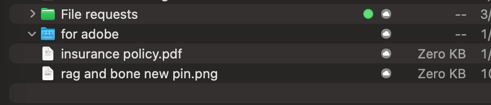 1) Ever since I updated creative cloud a few weeks ago, now the dropbox desktop icons (for dropbox desktop app) have disappeared. And I went over it with dropbox and they instructed me to go to System settings on mac → general → Login Items & Extensions, and scroll all the way down to the “extensions” section and find where its says “creative cloud” and hit the circle i icon, and toggle on and off “file provider” then my dropbox desktop app sync icons come back. Dropback says creative cloud is notorious for hyjacking desktop icons. I must note this fix is temporary and resurfaces later. I’ve provided a screenshot below of what the dropbox desktop app sync icons look like.