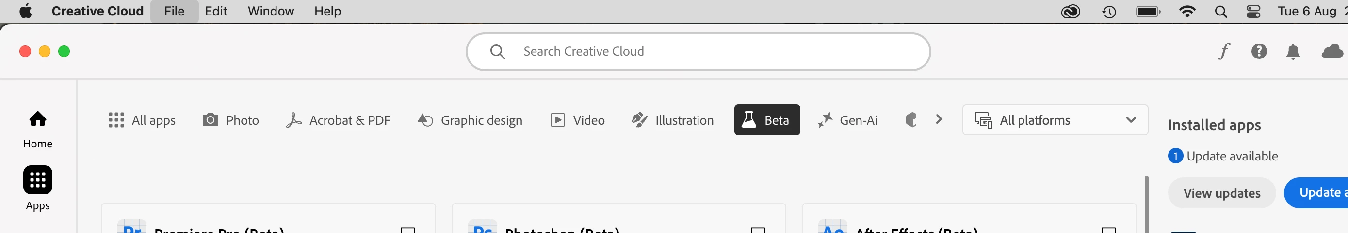 Cannot find the beta apps in CC desptop app