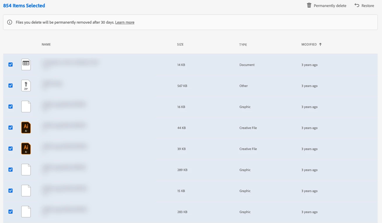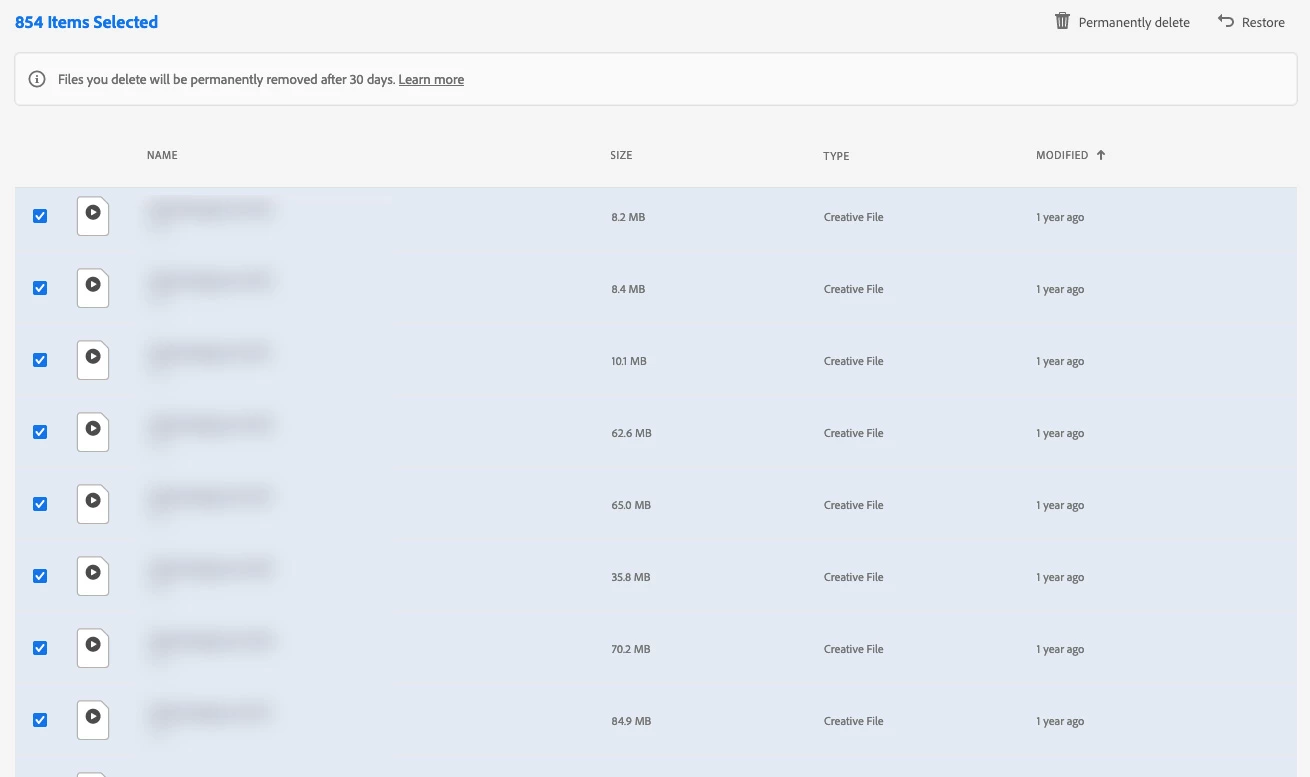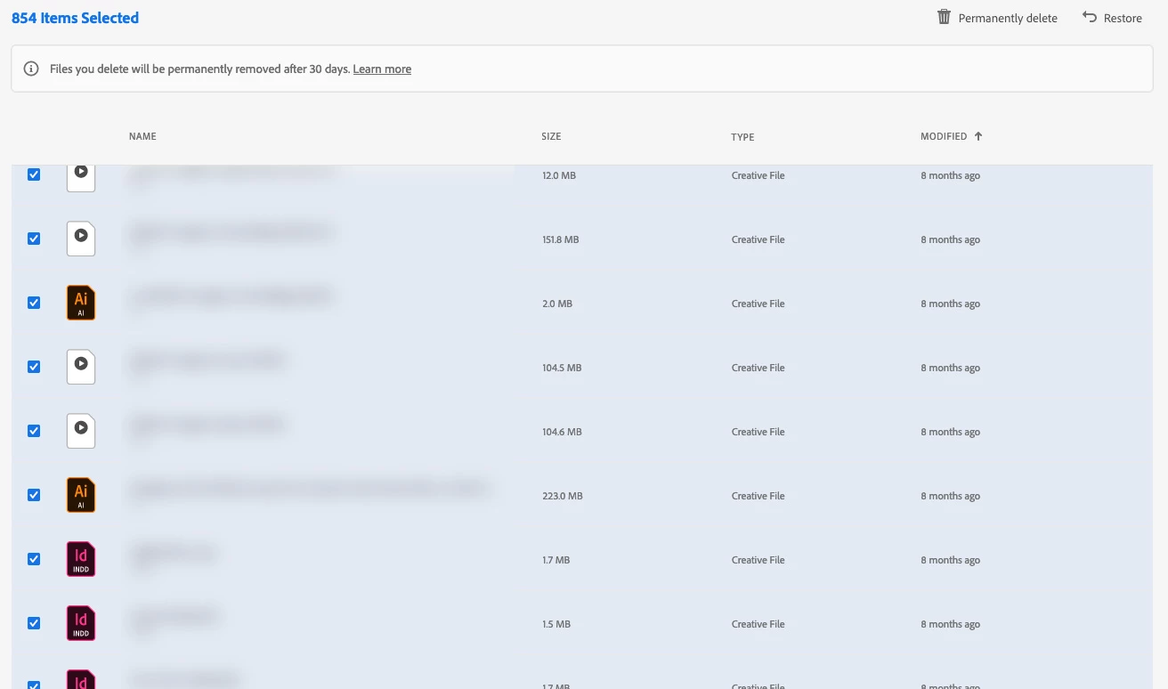 Cannot permanently delete sync files in Creative Cloud