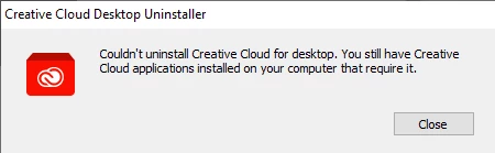 So I'm trying to uninstall Adobe Creative Cloud due to a looping error for it trying to log me out and wanting me to login but whenever I try to uninstall I get the following: "Couldn't uninstall Creative Cloud for desktop. You still have Creative Cloud applications installed on your computer that require it." So when I try to uninstall Adobe Photoshop and Adobe Illustator it opens the Creative Cloud and continue the same looping error without uninstalling the program. I've already tried repairing Creative Cloud and uninstalling the programs through Control Panel, to no avail.