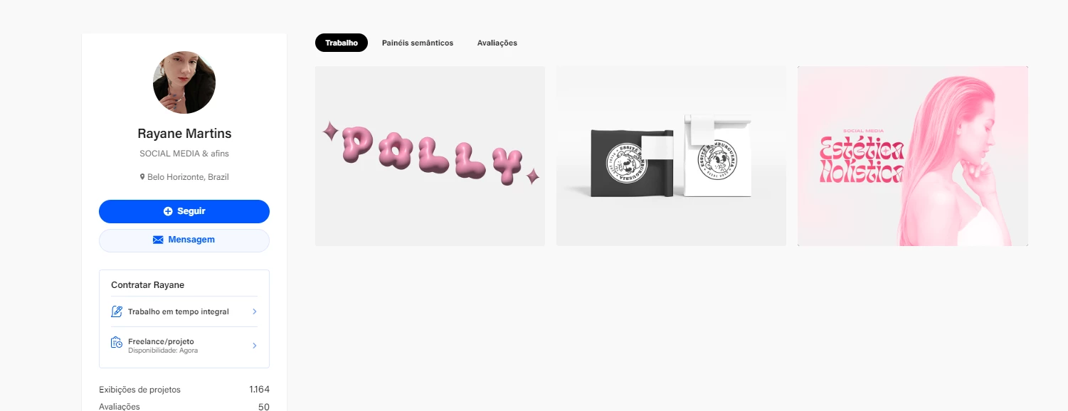 She need to re-gain access to his original profile > https://www.behance.net/rayanemartins2