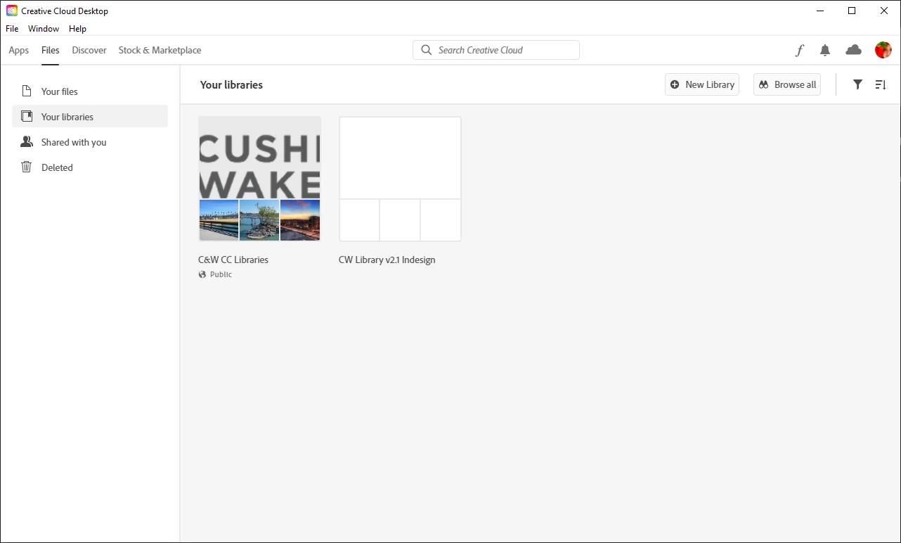 I am downloading .cclib files the my company provides and I am unable to see previews eiher in the Creative Cloud app or on the preview pane of InDesign, PhotoShop, etc.
